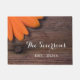 Personalice el encantador Naranja Rústico Daisy y Barn Wood Doormat con su apellido y año en que se casó o compró su casa. Esta elegante alfombra de bienvenida personalizado informal presenta una pintoresca fotografía floral de un naranja de flores de margarita germánica y madera de pino marrón con la cabeza de uñas oxidada que hace un gran regalo de bienvenida o un regalo boda para una pareja recién casada.