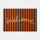 Rústico Naranja quemado y rayas negras en el otoño de Doormat presenta rayas negras en el fondo naranja quemado en otoño y una elegante tipografía de "Bienvenida". Un diseño perfecto para Halloween o decoración de acción de gracias. También es un regalo.