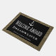 Hermosa y elegante alfombra de bienvenida para su yate o barco. Patrón de diseño de arte de oro falso enmarca el espacio de texto. Monogramado con el nombre de su nave. Náutica con borde de cuerda, ancla y tipografía. Bienvenido Aboard con su nombre y ubicación. Perfecto para casas de lago, casas de playa y barcos en los muelles.
