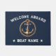 Felpudo Nautical Gold Anchor Naval Blue Welcome Aboard Bot
