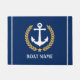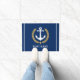 Decore su entrada a casa con un doormat de temática náutica y su nombre de barco personalizado, nombre de familia u otro texto deseado. Con un ancla de barco de diseño personalizado con un laurel de estilo oro, deja emblema y rayas de cuerda náuticas en blanco sobre azul marino o ajusta fácilmente el color primario para que coincida con tu decoración o temática actual.