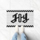 Este divertido y moderno porche de tejas con la palabra "alegría" te hará sentir como en las vacaciones. Ya sea que su estilo sea una casa de campo moderna o una moda retro, esta alfombra es para usted! Esta alfombra incluye un diseño de mosaico falso en blanco y negro. Es duradero y no deslizante. Comparte fotos de tu alfombra en Instagram -> @alymarieart
