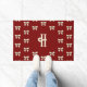 Un doormat clásico monograma con un elegante patrón de arco sobre un fondo rojo festivo. Ideal para las vacaciones.