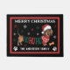 Diseño festivo de dachshund con un cachorro en un sombrero y suéter de Santa con un alegre banner de "HO HO HO", perfecto para regalos y decoración de vacaciones.