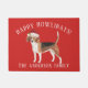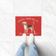 Adorables Navidades doormat con un Beagle usando un sombrero de santa en un fondo rojo festivo.