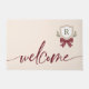 Bienvenidos a su casa en esta temporada de vacaciones con este acogedor y lindo escudo Navidades doormat. Cuenta con un escudo festivo con las primeras estriberas, siempre verdes, de tu familia, y un arco festividad a rayas y "bienvenido" en escritura a la moda y escrita a mano. Todos los colores son editables. © Kimbellished, LLC