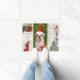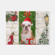 Navidades Bulldoges ingleses sentados afuera de la casa decorada con Navidades corona, el árbol de Navidad es una idea de regalo perfecta para los Navidades de perro.