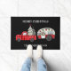 Perfecto para su camper, sin importar el tamaño o estilo - camión rojo vintage con árboles de Navidad tirando de un camper decorado para Navidades. Personalice con su propio texto.