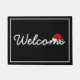 Tapón de puerta en blanco y negro con sombrero de santa de vacaciones y guarnecido blanco. Personalizar esta alfombra o compra como está.