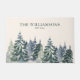Este elegante y rústico hotel cuenta con una hermosa y moderna pintura acuarela de estilo casa de campo de un bosque de árboles. Personalízalo con tu apellido y fecha. Perfecto para Navidades o para todo el año.