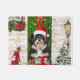 Navidades de Perro Havanés sentados afuera de casa decorada con flores de Navidad, el árbol de Navidad es una idea de regalo perfecta para Navidades amantes del perro.