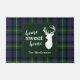 Cute hogar dulce hogar Navidades de casa bañador de alfombra usted puede fácilmente personalizar haciendo clic en el botón "Personalizar", con silueta de ciervo y clan MacKenzie tartan en verde, y verificación púrpura. Perfecto para el acondicionamiento de la puerta principal durante las vacaciones. Hace un gran regalo