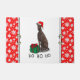 Feliz Navidad, Papá Noel Greyhound - Un perro gracioso, sonriente, con un sombrero de Papá Noel y sentado con un regalo de Navidad con un arco y campanas. ¡HO HO HO! Derechos reservados © Angi Laframboise. Navidades lindos de vacaciones de perros engendran regalos personalizados para los amantes del perro.