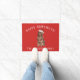Adorables Navidades garabatos con un perro de Terranova usando un sombrero de santa en un fondo rojo festivo.