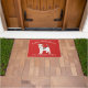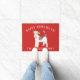 Adorables Navidades doormat presentando un Perro Terrier de la zorra haitiana con un sombrero de santa en un fondo rojo festivo.