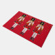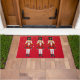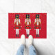 Doormat se muestra con un color de fondo rojo y una huella de petardo de Navidades festivos. Personalizar esta alfombra o compra como está.