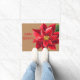 Doormat mostrado con un color de fondo de color marrón y una estampación de poinsettia roja de Navidades festivos. Personalizar este felpudo o compra como está.