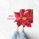 Doormat mostrado con un color de fondo blanco y una estampación de poinsettia roja Navidades festivos. Personalizar este felpudo o compra como está.