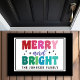 Anillo en temporada de vacaciones con este doormat festivo que presenta una moderna tipografía de estilo retro en una vibrante mezcla de rojo, rosa, morado y verde. Un saludo alegre que dice "Merry and Bright" (Feliz y brillante) añade un toque divertido a tu puerta, y da la bienvenida a los huéspedes con alegría por las vacaciones. Personalizar este diseño agregando tu nombre de familia para crear una bienvenida única e inolvidable a tu hogar esta temporada de Navidades. Hace un gran regalo para los nuevos propietarios.