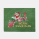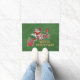 Esta alfombra exterior de la puerta de bienvenida es verde oscuro con el texto Feliz Navidad en oro brillante junto con un tren de Navidades rojos y blancos con Santa Claus como el conductor que lleva latas de dulces, santo verde y cartas a Santa Claus.
