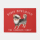Adorables Navidades garabatos con un Perro Chihuahua de Largo Haider usando un sombrero de santa en un fondo rojo festivo.