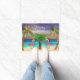 Navidades flamencos y palmeras doormat costero en la decoración de la casa Holiday con mi arte. Fun flamencos costeros festivos y palmeras decoradas diseño tropical Holiday. Disponible en varios tamaños.