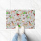 Perros de Navidades muy amables vestidos con ropa festiva. Los Territorios Fronterizos con sombreros de Santa, corderos y sudaderas de argyle sobre un fondo gris con ornamentos dispersos.