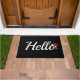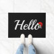 Holiday Hello doormat se muestra en una impresión de sombrero de santa de vacaciones.