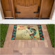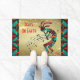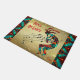 Personaliza a este Navidad único "uno de los tipos", Kokopelli Doormat! Cuenta con un Kokopelli que toca la flauta con notas musicales y baila sobre el fondo de los Navidades de oro con copos de nieve, rodeado de turquesa, fronteras Naranjas y negras y las palabras inspiradoras..."¡Paz en la Tierra"! Diseño De Arte Original Del Artista Kerry Miller.