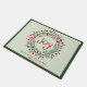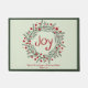 Un diseño para que tu felpudo recuerde la razón de la temporada. Una simple corona verde y roja en un fondo verde sabio con una tipografía de "alegría" roja. Philippians 4:4, "Regocijaos siempre en el Señor. Lo diré de nuevo: ¡regocijo!"