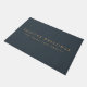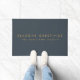 Sencilla, elegante y moderna alfombra de puertas de bienvenida de vacaciones con moderna tipografía minimalista, con "Seasons Greetings" en oro sobre un fondo gris pizarra. El nombre y el saludo se pueden personalizar fácilmente para un toque personal. Un diseño audaz, minimalista y contemporáneo de navidades para destacarse de la multitud en esta temporada de vacaciones. #navidades #doormat
