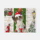 Navidades de Papillon Perro sentados afuera de casa decorada con flores de Navidad, el árbol de Navidad es una idea de regalo perfecta para los Navidades de perro.