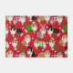 Perros CuteCute Rough Collie vestidos con trajes festivos, sombreros de Santa y jersey de argyle con adornos de Navidad dispersos.