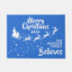 Muéstrate lo mucho que crees en la magia de los Navidades y de Santa Claus con este felpudo de Navidades con la silueta del trineo de Santa en blanco con sus renos, volando en un rastro de estrellas. La leyenda de arriba dice Feliz Navidad con letras blancas escritas a mano. El texto es fácilmente personalizable con sus deseos, año y apellido o nombre de negocio. Este doormat hace que los Navidades perfectos decoren su hogar