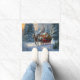 Santa conduciendo un trineo de un caballo para entregar regalos de Navidad en un pequeño pueblo