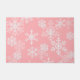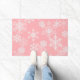 Doormat mostrado con un color de fondo rosado y un Navidad festivo estampado de copos de nieve vacacional. Personalizar esta alfombra o compra como está.
