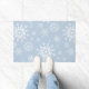 Doormat mostrado con un Navidad festivo impreso de copos de nieve vacacional. Personalizar de niebla azul color esta alfombra o compra como está.