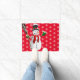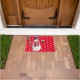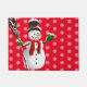 Doormat mostrado con un color de fondo rojo con una linda huella de muñeco de nieve de Navidades festivos. Personalizar esta alfombra o compra como está.