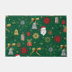 Navidades dibujados a mano por bonitos esquivan el ilustracion, compuesto por adornos de bola roja y dorada de árbol de Navidad, Santa con el gorra rojo, hojas verdes y bayas rojas, arcos dorados, velas iluminadas, flor de poinsettia roja, estrella de Navidades, campanas grises y doradas, estrellas y copos de nieve, en un fondo verde bosque. Decoración de moda de temporada, temática Navidad y festiva.