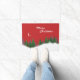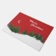 Bienvenido a sus huéspedes con esta alfombra de puertas de Woods Navidades. - Árboles de abetos con nieve por debajo y luna creciente por encima. ¡Las palabras "Feliz Navidad" son personalizable!