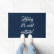Bebé hace frío fuera de la oscuridad azul marino y blanco personalizado caligrafía texto elegante lindo bienvenida elegante Doormat