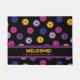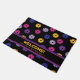 Rosa neón, amarillo y morado sobre el patrón de bola de pickleball negro, texto personalizado fresco Doormat . Perfecto como regalo para el jugador de pickleball. texto de personalizable .