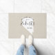 Moderna casa de campo personalizada doormat con su nombre familiar dentro de su mapa estatal. Fondo de textura de tela burlap falso. Haga clic en Personalizar para agregar su propio texto e imágenes y crear un diseño único de un tipo.