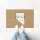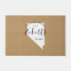 Moderna casa de campo personalizada doormat con su nombre familiar dentro de su mapa estatal. Fondo de textura de tela burlap falso. Haga clic en Personalizar para agregar su propio texto e imágenes y crear un diseño único de un tipo.