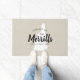 Moderna casa de campo personalizada doormat con su nombre familiar dentro de su mapa estatal. Fondo de textura de tela burlap falso. Haga clic en Personalizar para agregar su propio texto e imágenes y crear un diseño único de un tipo.