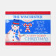 Felpudo Nieto divertido en Gorra azul y bufanda | Navidade