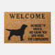 ¡Bienvenidos invitados con este divertido doormat de Labrador! "No hay necesidad de llamar, sabemos que estás aquí". Los labradores. Bienvenida Doormat - Alfombrilla de auto de Perro Perro. Rústico coco de imitación natural y diseño negro con labrador recuperever. DERECHOS RESERVADOS © 2020 Judy Burrows, Black Dog Art - Todos los derechos reservados.