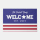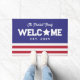 El 4 de julio de 2014, el Doormat de bienvenida con su apellido y año establecido con BIENVENIDA en letras de varsity blancas y una estrella reemplazando la o con un fondo azul sobre rayas rojas y blancas.
