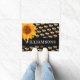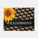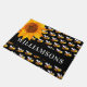 Decorada con abejas amarillas y negras felices y sonrientes y un gran girasol acuático. Un fondo negro de moda. Personalice y agregue un nombre.