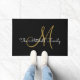 Felpudo Nombre de familia de monograma negro con guión mod